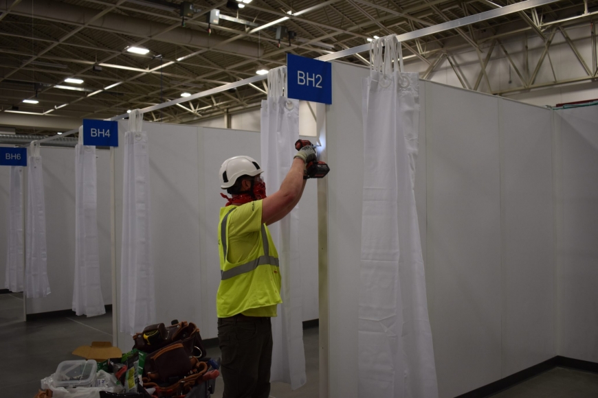 While the work performed by union carpenters was completed in just eight days, overall construction of the facility was completed in just two weeks. The project’s quick turnaround reflects the urgency to assist our already busy health care systems that are overwhelmed accommodating additional patients suffering from the Coronavirus.